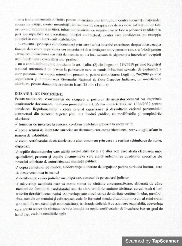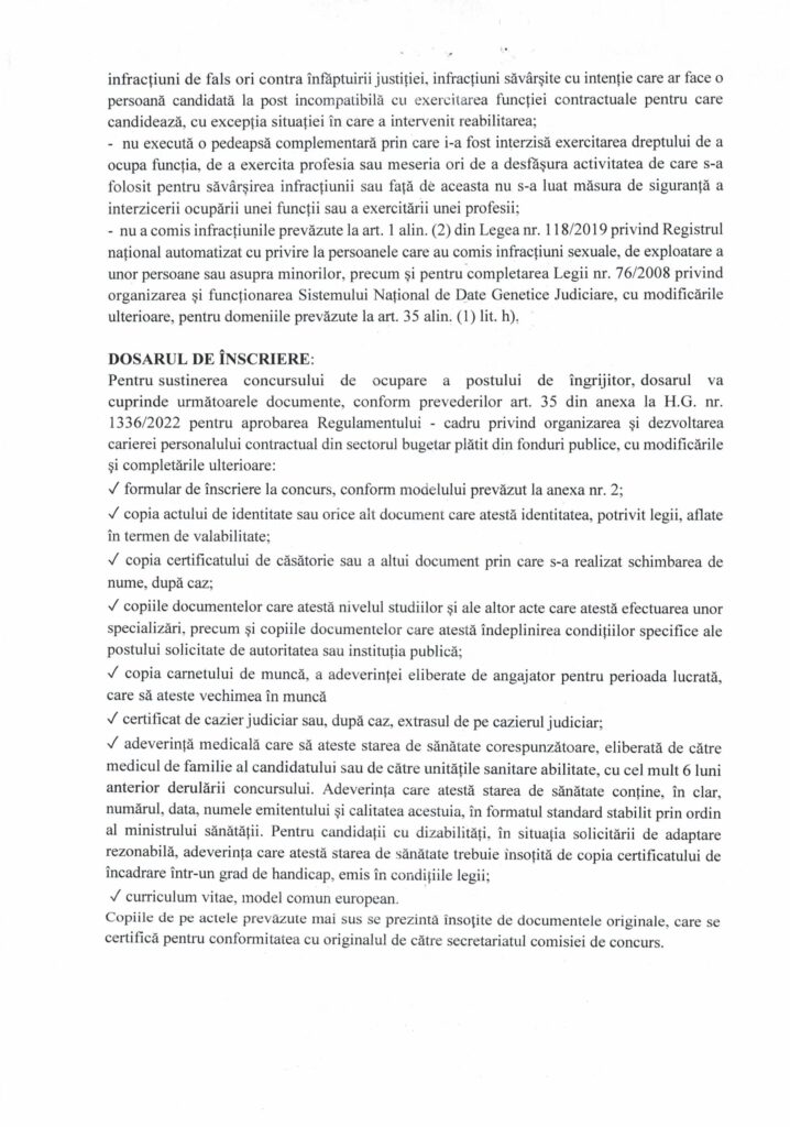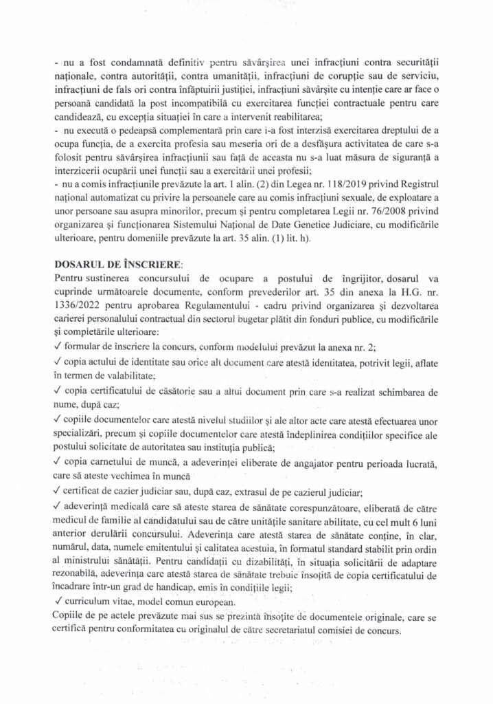 alte condiții specifice potrivit cerințelor postului scos la concurs; - nu a fost condamnată definitiv pentru săvârșirea unei infracțiuni contra