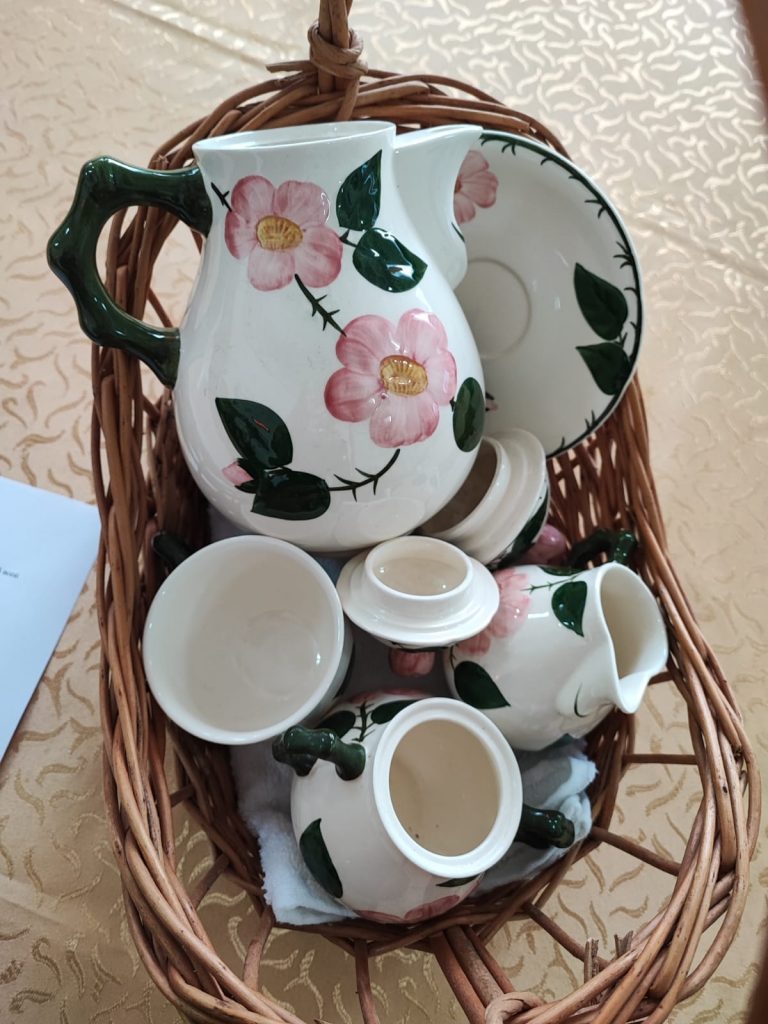 Pentru a-și motiva precizările, din colecția personală, dar împrumutând și din recuzita cunoscătorilor pasionați, d-na prof. a pus la dispoziția tuturor, pentru a admira și chiar utiliza, mai multe articole: cești, farfurii și ceainice, provenind din epoci și țări diferite, păstrate impecabil de-a lungul perioadelor istorice tumultoase care au trecut peste ele, dovezi clare ale faptului că lucrurile de calitate rezistă cu ușurință testului timpului, transmițând mai multor generații inspirația și măiestria celor care le-au realizat.